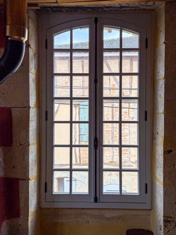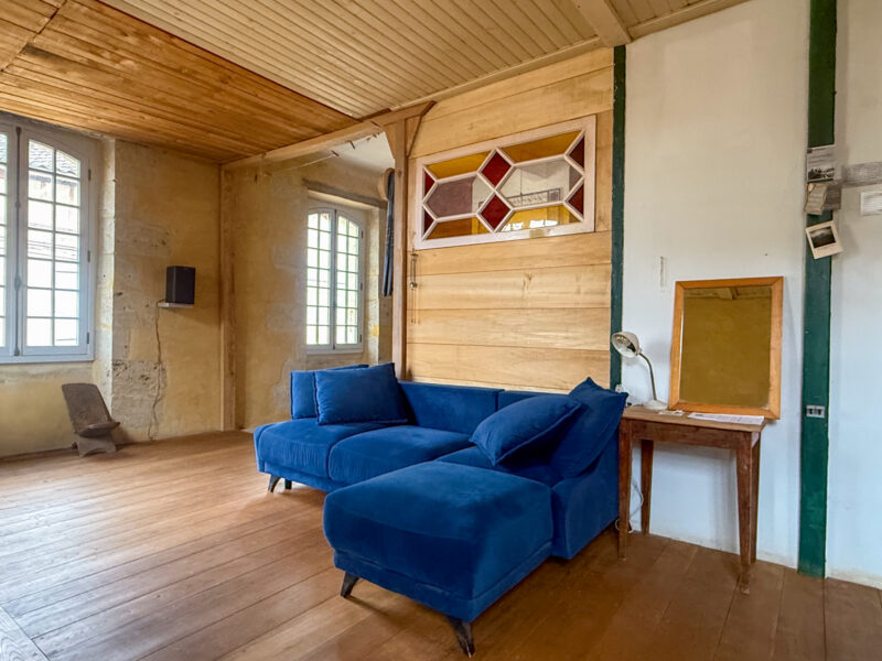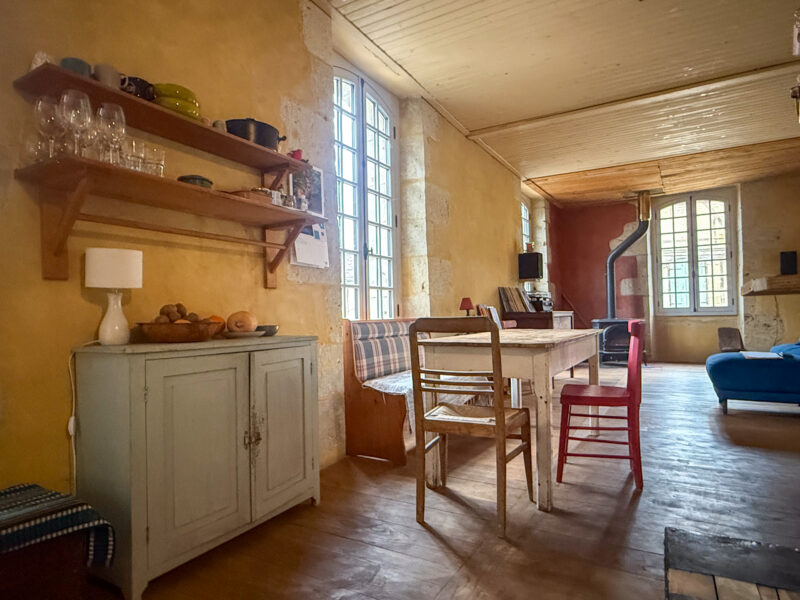 The entire first floor serves as the living space of this property. Conceived as an open plan loft space, it offers high ceilings and large, elegant windows. A Jotul wood burner provides warmth and cheer to the entire house and is also extremely economic There are 5 large double windows on this floor, and all have been recently replaced in high-quality double-glazed wood in compliance with local building codes. As a result, the entire living space is filled with natural light.