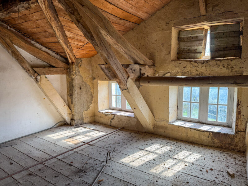 The outbuilding continues with a large open barn, above which lies a spacious room to be renovated and adapted to suit future projects.