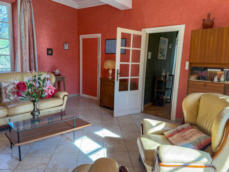 The central section houses the guest house, accessed from the rear. It comprises two reception rooms and a small internal kitchen on the ground floor. The space is bright thanks to large windows and French doors. Upstairs, a corridor leads to three bedrooms, a shower room and separate WC. The property is in very good condition, heated and immediately habitable.