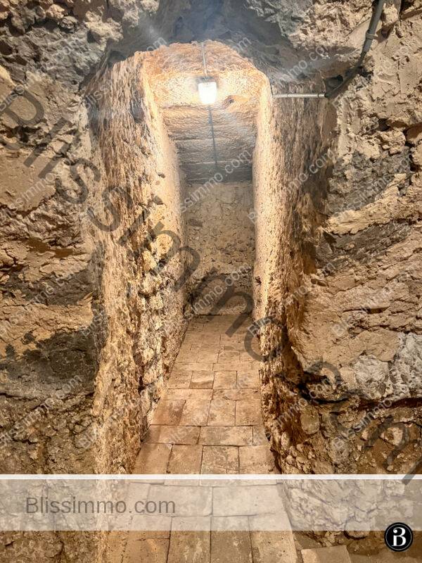 A door in the back hall opens to reveal a staircase leading down to the extensive cellars built into the rock. Here we find the oil-fired furnace that heats the house. There is a long room with a vaulted ceiling that could make an impressive wine cellar, a large storage room and another long room with doors to the garden, followed by two smaller spaces. There is so much space here, and as there are several large doors opening to the garden, this part of the house could be used for a variety of things, including garden equipment storage, a wine cellar or tasting room, a winter greenhouse…there are many possibilities.