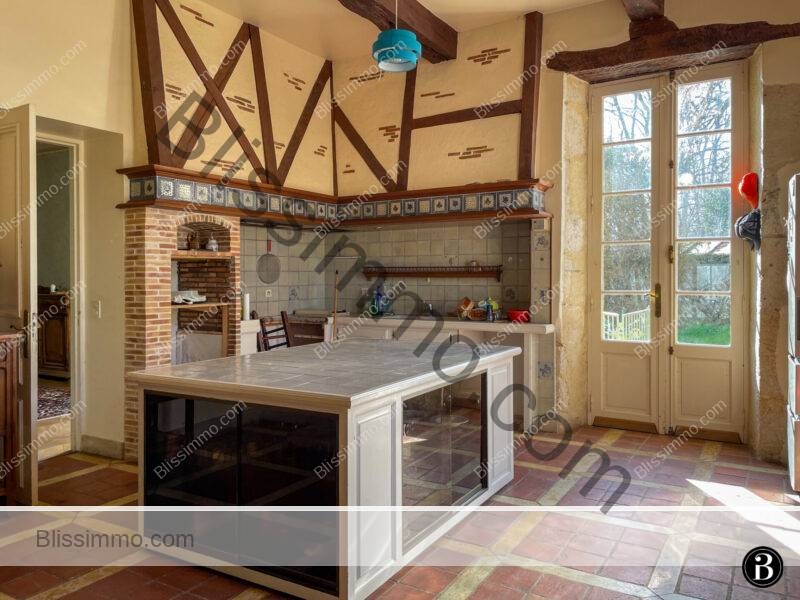 The property is built in a U-shape, so that all one side comprises the chateau, and it is attached to the outbuildings via a large back kitchen with a room to renovate above, followed by a charming tower with an arched passageway leading to the back terraces, the main driveway, and the pool area.