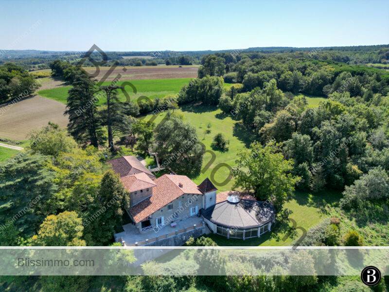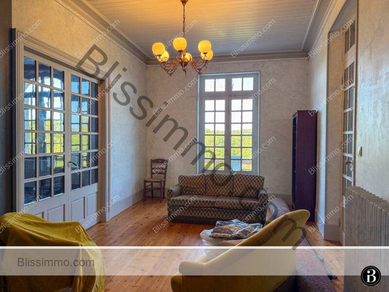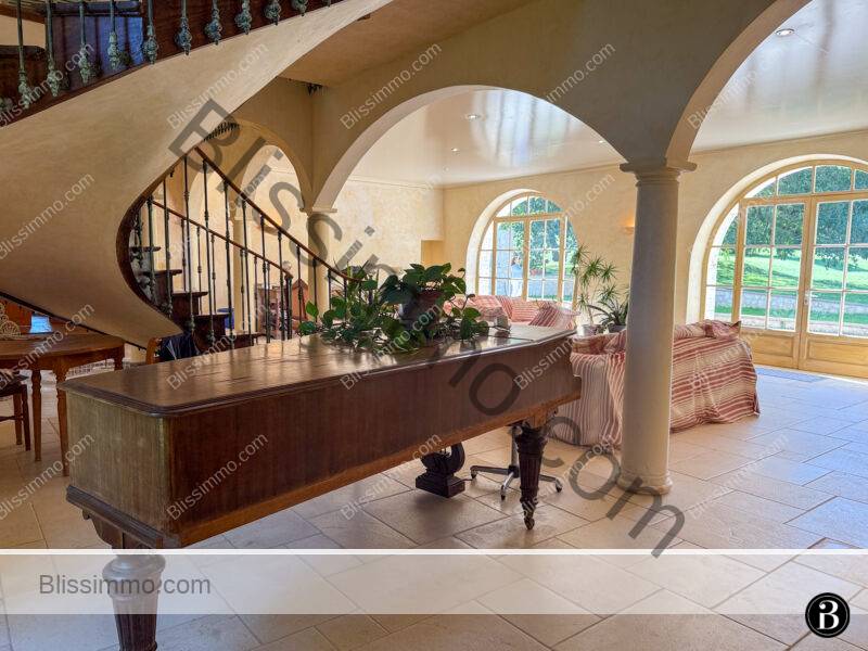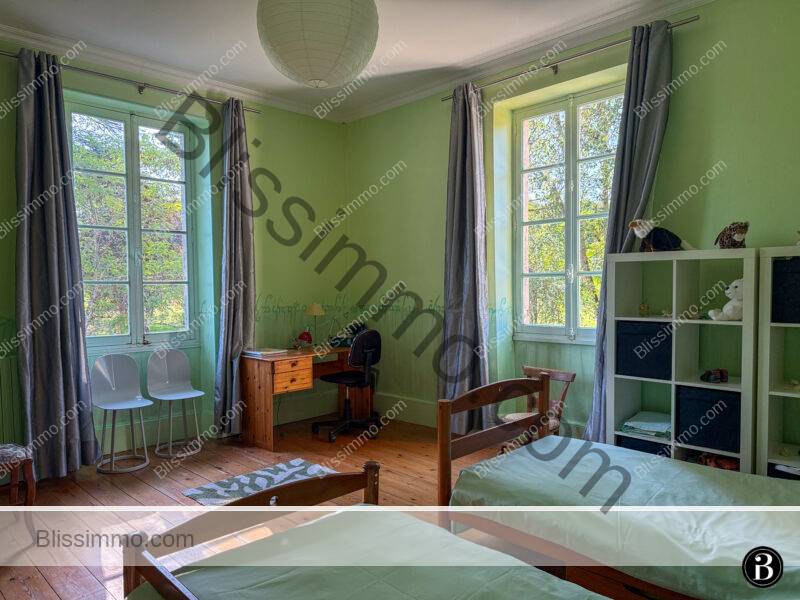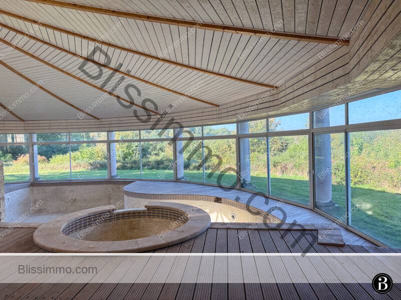 Située au sommet d’une colline et entourée de 19 hectares de prairies et de bois, cette vaste bâtisse en pierre bénéficie d’une intimité totale tout en se trouvant à seulement quelques kilomètres d’une ville dynamique offrant toutes les commodités. Elle appartient à la même famille depuis plus de vingt ans, qui y a laissé son empreinte, notamment avec la construction d’une magnifique piscine intérieure.