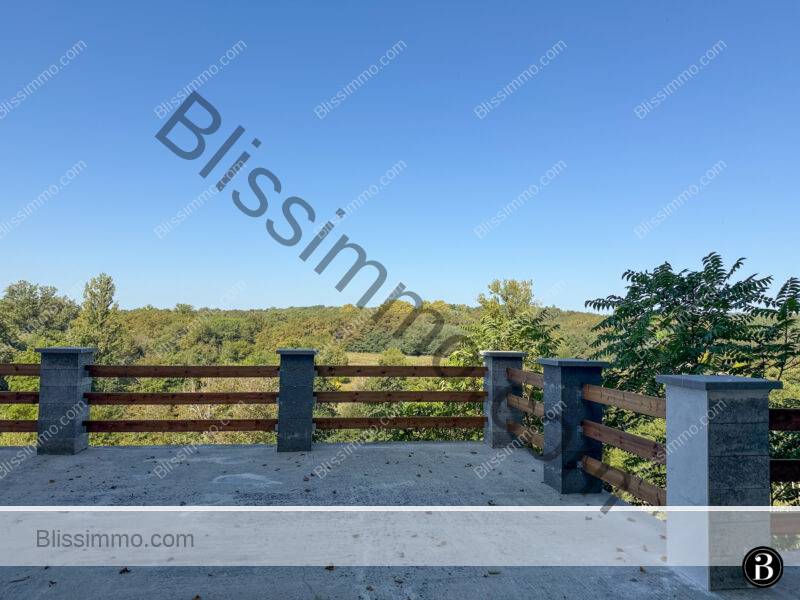 Le domaine s’étend sur dix-neuf hectares de forêt, pâturages et terres cultivées, garantissant une tranquillité absolue et de vastes vues panoramiques sur le paysage environnant. Sa configuration se prête particulièrement bien à l’accueil de chevaux, à des activités de plein air ou à des projets agro-touristiques ou écologiques.