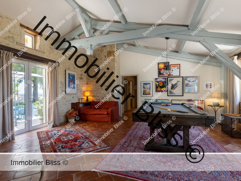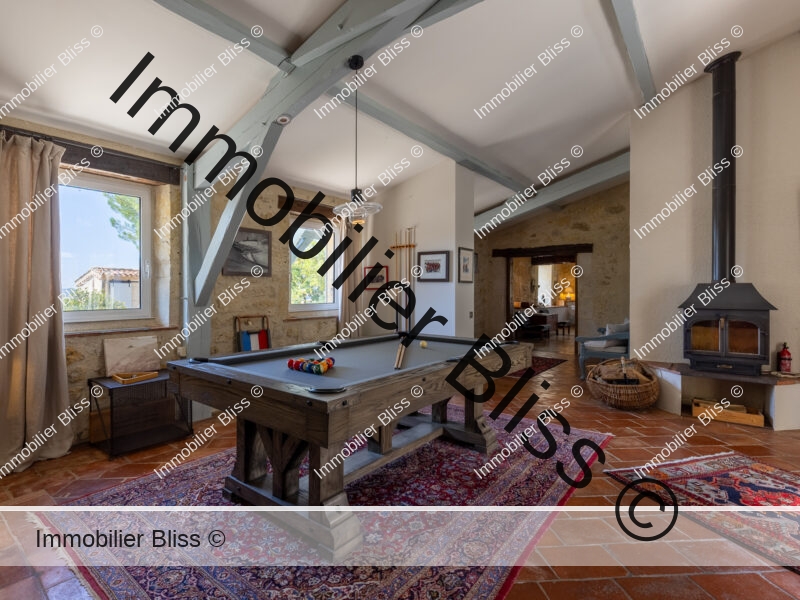 Deux salons : un pour s’enfouir dans un livre, l’autre pour parler trop tard, en oubliant l’heure. Et une salle de billard, pour prolonger tout ça, un verre d’armagnac à la main en écoutant du jazz (ou autre chose, selon les goûts !). Une cuisine pour faire des repas à n’en plus finir.