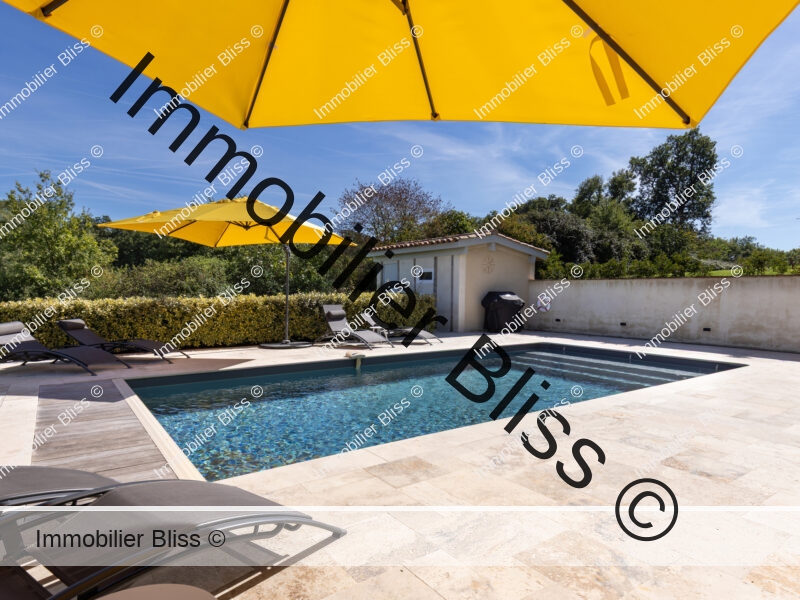 La piscine ? Le mot est faible ; c’est plutôt un lieu de détente, une destination de vacances. On y passera des journées entières, loin de tout. Grillades au barbecue, déjeuner à l’ombre arrosé de rosé frais, le regard perdu jusqu’au Pyrénées.
