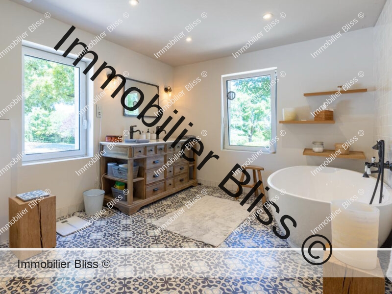 Les volumes. La lumière. Les matériaux choisis pour leur vérité plutôt que pour leur effet. Du bois, de la pierre, de la chaux. Parfois un détail plus contemporain, mais glissé juste pour souligner. Il y a du goût, du vrai, pas de ce bon goût ostentatoire qui fatigue. C’est une maison qui connaît la retenue. Et c’est rare.