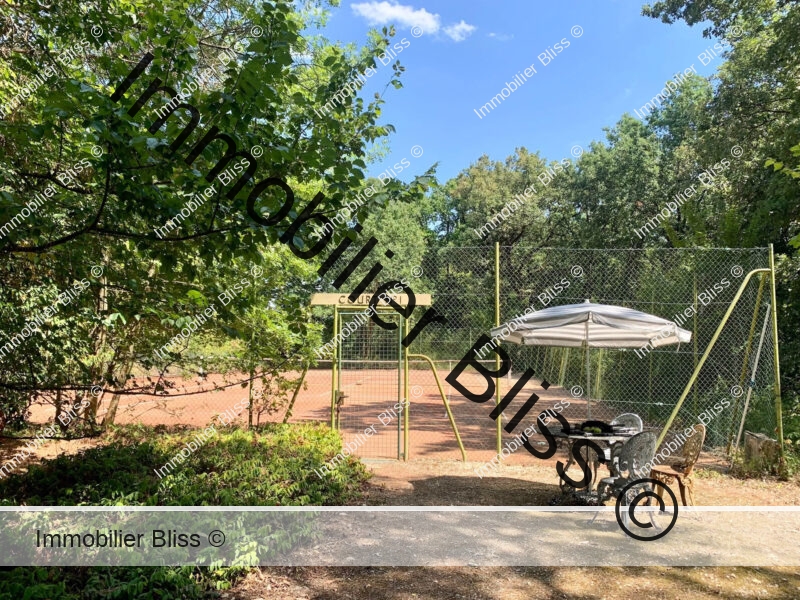 Le court de tennis et la piscine sont situés à une distance raisonnable de la maison, offrant un espace récréatif idéal pour la pratique de sport et les loisirs, sans empiéter sur la beauté classique et d’époque de la vieille propriété en pierre.