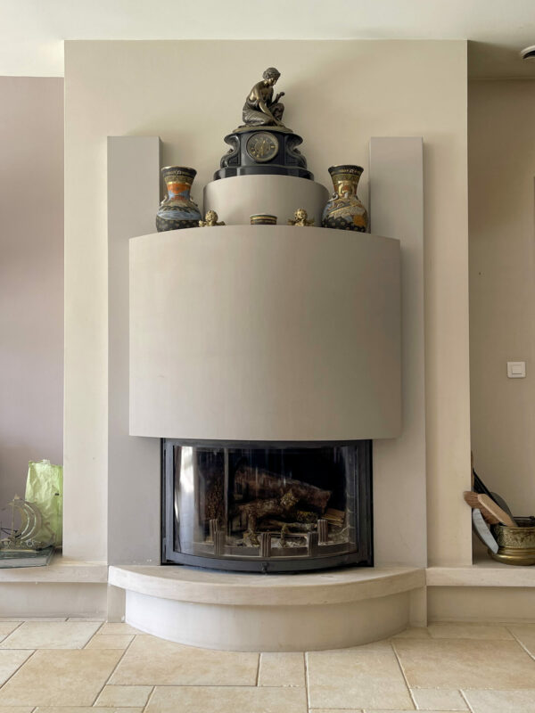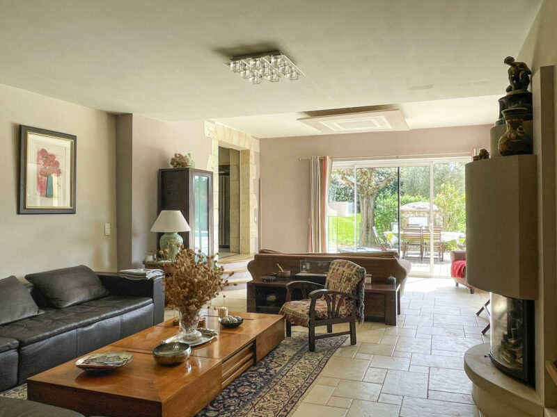 Juste après, trois marches plus bas, le salon. Il est vaste. Et double. Une première partie entièrement vitrée, pour profiter du soleil et des vues sur le jardin. La seconde pour profiter des soirées d’hiver devant la cheminée.